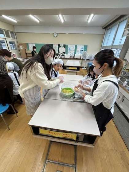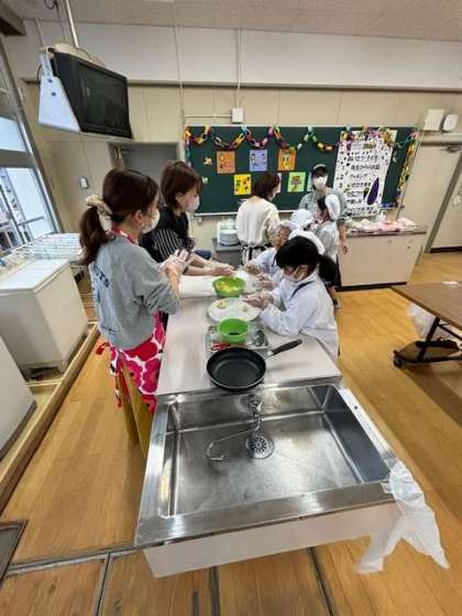 収穫したさつまいもで、おいもパーティをしました。家庭科室でさつまいもドーナツを作りました。