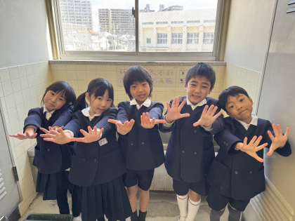 石けんを使って丁寧に洗ったので、みんなの手がピカピカになりました!