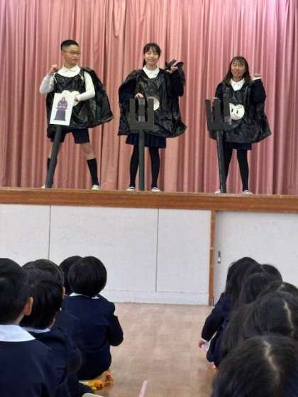 インフルエンザを予防するために、どんなことに気をつけたらいいのかを劇にして、発表しました。
