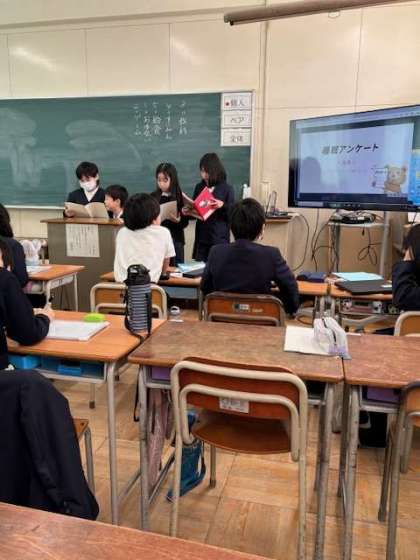 調べたことをグラフなどにまとめて、グループで発表しました。