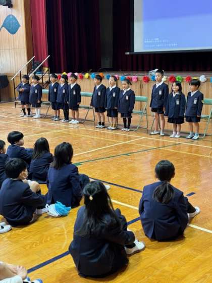 新たに佃小学校に加わった12名。声をそろえて元気に挨拶できました。