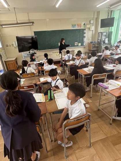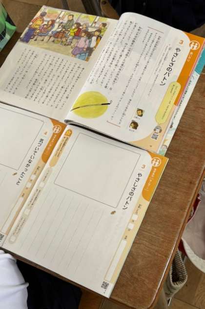 困っている人を助け合う小学生の話でした。助ける小学生の気持ちをみんなで話し合い、発表しました。