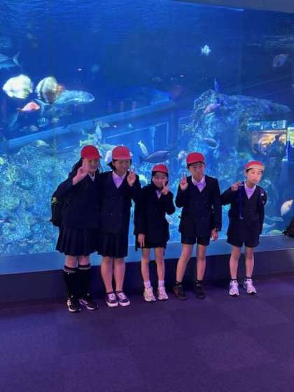鳥羽水族館に着きました。グループで写真を撮ってから、見学に行きます。