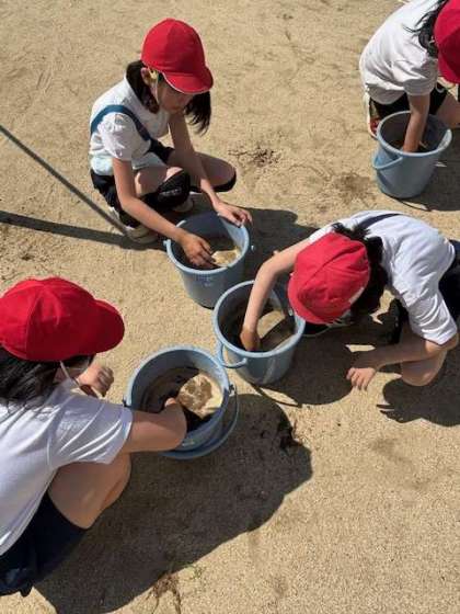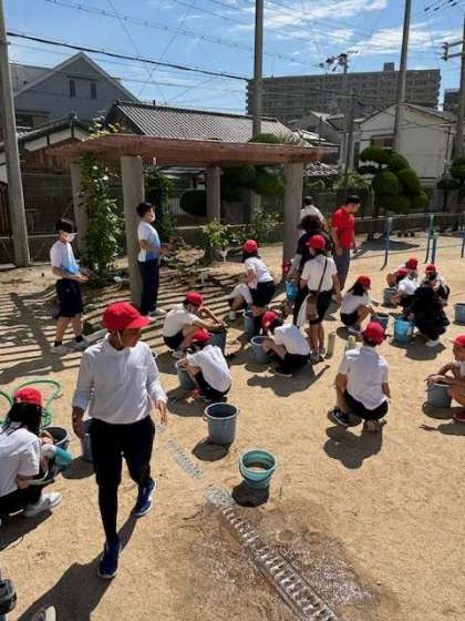 今日は、職場体験の中学生と一緒に稲を植えました。お米ができるのが楽しみです。