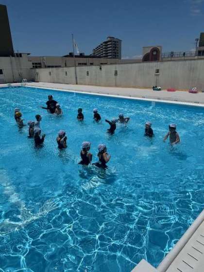 とても暑い日だったので、プールの中は気持ちよかったようです。もぐったり泳いだりする練習を頑張りました。