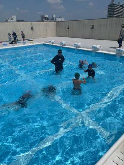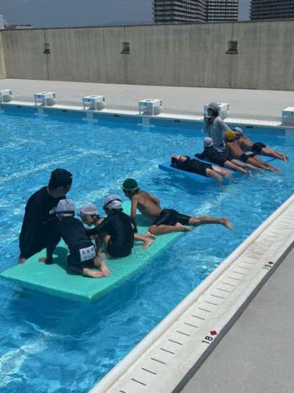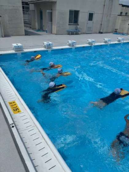 それぞれのグループに分かれて、バタ足や水中じゃんけんなどをしました。