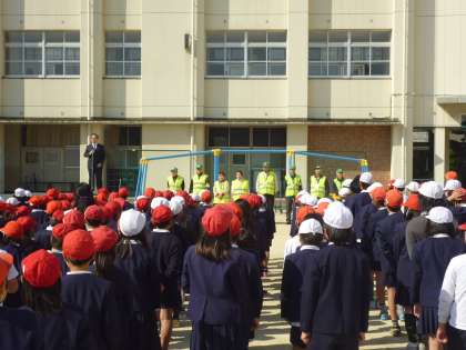 4月12日(火)、全校朝会で、「子ども安全見守り隊」の方々を紹介しました。地域や保護者の方々などにより、毎日、子どもたちの登下校の安全を見守っていただいています。「自分の命は自分で守る」という気持ちをもつことと、見守ってくださっている方々に感謝の気持ちをもって元気よくあいさつすることの話をしました。