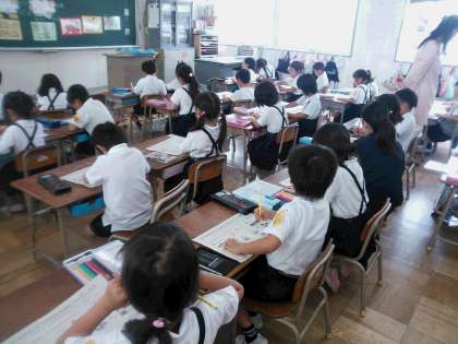 6月に入り栄養教諭の方が来校され、全学級に入って三色栄養などについての授業をしてくださいます。昨日の1年生の教室では、体にはいろいろな栄養が必要なことや、どの食材が何色の食べ物でどのような働きをしているのかを学習しました。ワークシートにも自分たちで色分けができ、好き嫌いなく食べることの大切さを学ぶことができました。