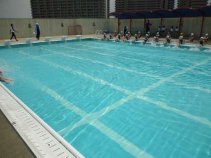 1年生は、初めてのプールに大喜び。みんなわくわくしていました。