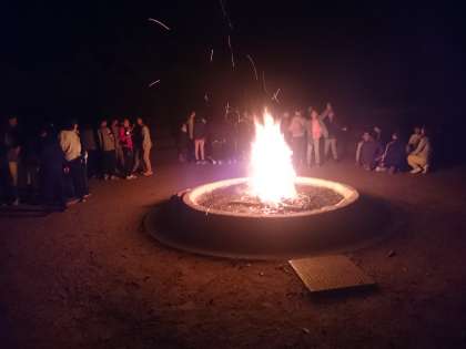 夕食の後、キャンプファイヤーをしました。ゲームや各クラスのスタンツで大いに盛り上がりました。これから入浴して夜のつどいをして、就寝の準備をします。