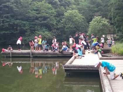 朝食後、湖まで散策しました。ここで午後はカヌー体験をします。湖には、ザリガニや魚がいました。