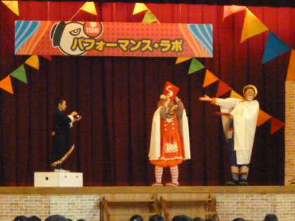 演目は、パフォーマンス・ラボさんによる、「クラウン・サーカス」です。子どもたちは、素晴らしいパフォーマンスに拍手喝采、大きな歓声を上げていました。