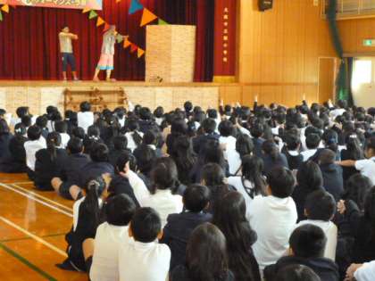 観客である子どもたちや先生を巻き込んで、あっという間の1時間でした。