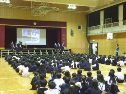 東京に行った代表児童12名が、交流の様子・聞いてきたことや感じたこと・東京見学の様子などを報告しました。全校児童がしっかりと聞き、交歓会の素晴らしさを感じることができました。