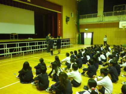 11月8日(火)の児童集会は、東京佃島小学校との交歓会の報告を行いました。