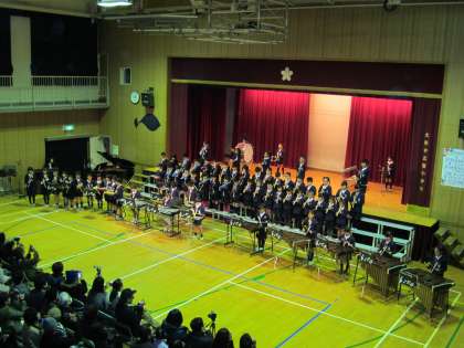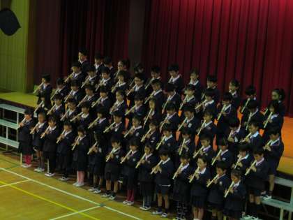 11月26日、土曜授業として「学習発表会」をおこないました。講堂で3年、1年、5年、4年、2年、6年の順で、子どもたちが日頃の学習の成果を発表しました。合奏、合唱、劇など、中には英語の歌詞やセリフもあり、いろいろな表現を工夫しながら取り組みました。どの子も生き生きと発表して、感動あり、笑いあり、心温まるものありと、おうちの方ともども楽しむことができました。