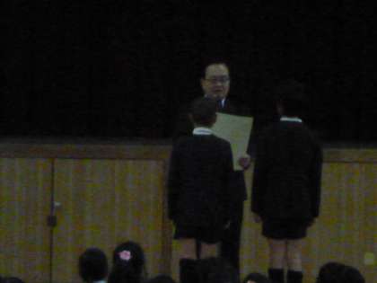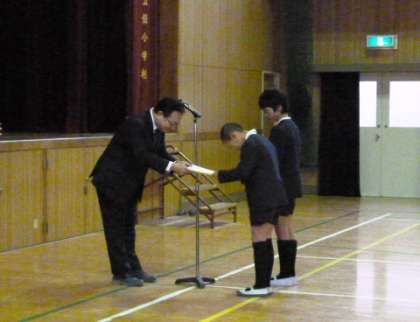 12月13日全校朝会で、10日(土)に行われた「おおさか子どもジャンプアップ大会」の表彰を行いました。