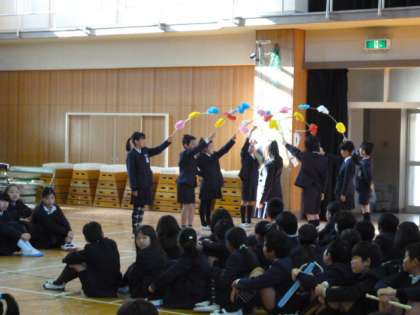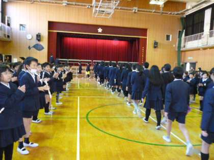 6年生の入場を拍手で迎えます。