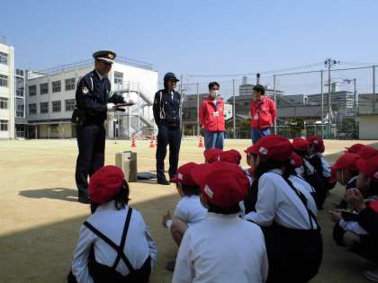 4月14日(金)2時間目に1年生の交通安全指導を行いました。正しい歩行の仕方について西淀川警察と西淀川区役所の方々に教えていただきました。子どもたちは安全に気を付けることを学びました。