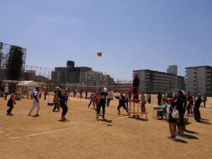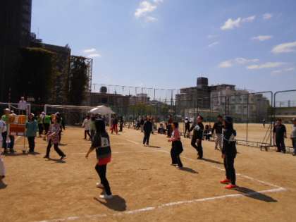 4月23日(日)に佃中学校で佃地域親善ソフトバレーボール大会が行われ、PTAが参加しました。一回戦は2−2町会、二回戦は2−1町会、三回戦は佃中学校PTAと対戦しました。残念ながら勝利には届かずも、みんな頑張って楽しい一日でした。