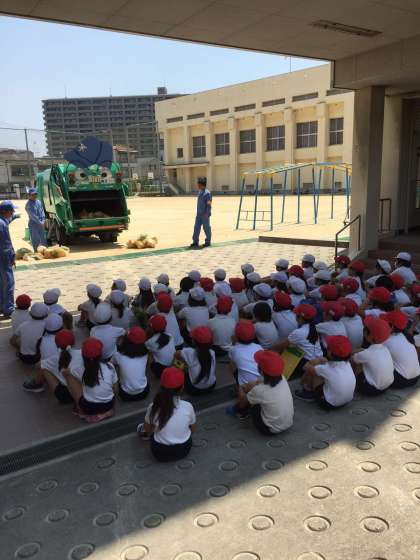 また、パッカー車の乗車体験もさせてもらい、子どもたちは、目を輝かせてとても喜んでいました。