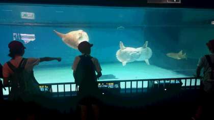 グループ行動の時間では、マンボウなどのいる水槽を見学したり、魚などに触れることができる水槽がありました。