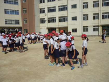 6月13日(火)の児童集会は、なかよし班(たてわり班)のゲーム集会で「人間知恵の輪」をしました。班のメンバーで手をつないで輪を作り、手と手の間をくぐって知恵の輪を作っていきます。