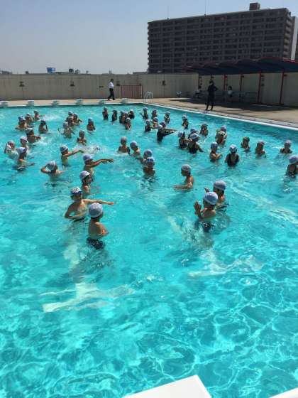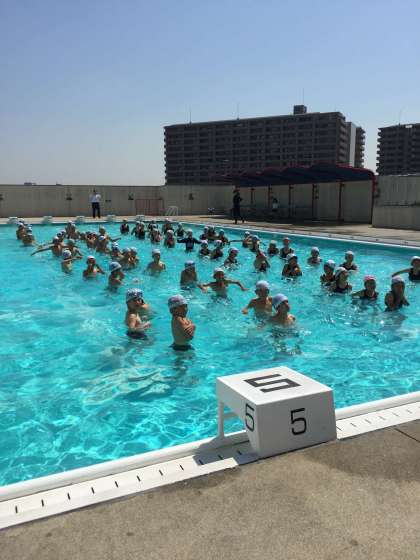 4年生はリズム水泳なので、リズムに合わせて楽しそうに水泳に取り組む姿が印象的でした。