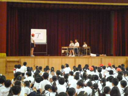 7月4日(火)、児童集会で「まちがいさがし」ゲームを行いました。はじめとあとで何が変わったかを当てるゲームです。集会委員会の子どもたちが内容を考えました。まちがいを見つけた子どもたちは、とても楽しそうでした。