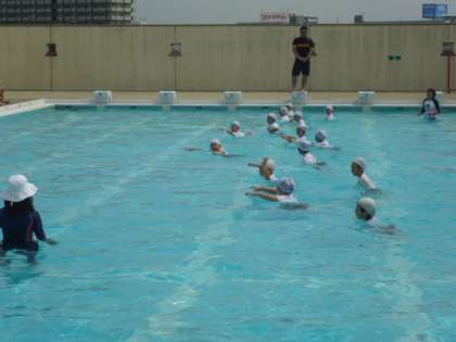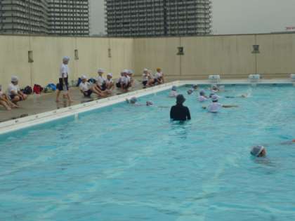 7月7日(金)1、2、3年生の着衣泳を行いました。体操服を着て水に入ると、重い、動きにくい、などがわかりました。子どもたちは、ペットボトルを使って浮くことは難しかったです。