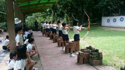 神戸市立自然の家に歩いて移動し、2つのグループに分かれて、アーチェリーとカヌーを入れかえで体験しました。とても楽しかったです。
