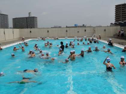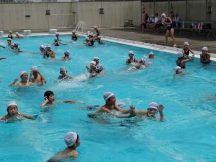 6月18日、3〜6年生がプール開きをしました。1、2年生は19日に行う予定です。子どもたちは自分なりの課題をもって、泳力を伸ばしていこうとがんばっています。天候にも気をつけながら、健康と安全を第一に考え楽しいプール学習を行っていきます。