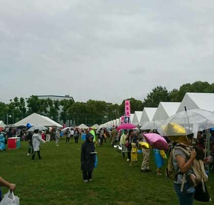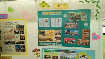 9月16日(土)西淀公園で、西淀川区民まつりが開催されました。台風18号の影響で、お天気はあいにくの雨でした。そのため、一部の催物は中止になりましたが、各ブースにはたくさんの親子が来ていました。佃小学校の参加予定だった玉入れも中止になり、ブースでのパネル展示のみになりました。