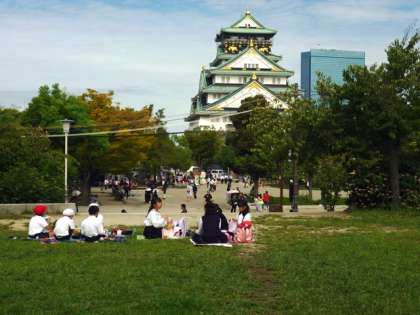 そして大阪城を望みながらのお弁当タイム。その後、天守閣に登り、展望台からの風景を眺めました。