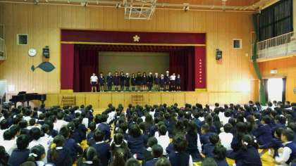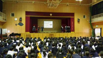 24日(水)の児童集会では、健康委員会が「けがの防止」についてのクイズや劇を行い、全校児童で考える機会をもちました。