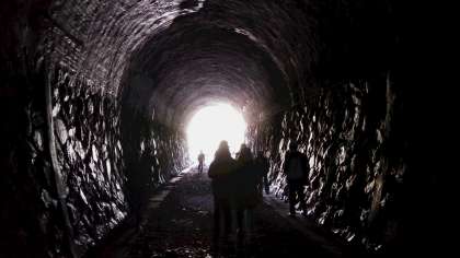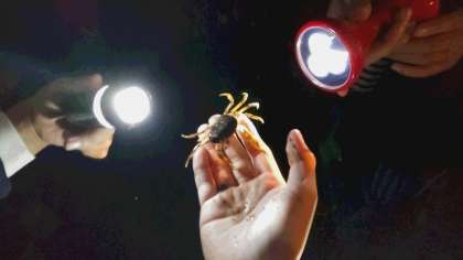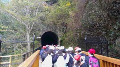6つのトンネルの中は懐中電灯の光を頼りに歩きました。真っ暗なS字カーブのトンネルではその暗さに、みんな大興奮でした。また、コウモリやカニも見つけることができて、とても嬉しそうでした。