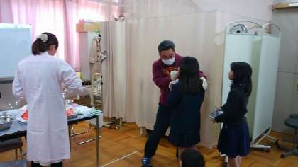 11月1日(水)の2時間目に、歯科校医の先生と歯科衛生士さん2名の方にお越しいただき、4年生の児童を対象にフッ化物塗布を行いました。