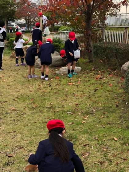 寒くなって、緑色だった葉っぱが黄色や赤色に変わっていたりしていました。秋を感じながら探検し、楽しく遊ぶことができました。