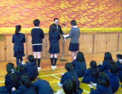 集会の後、「税に関する習字」の表彰を行い、4名が賞状を授与されました。