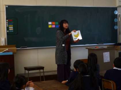 色を使って、歌や絵本、カルタゲームなどを行いました。とても楽しく活動することができました。(写真は1年2組の様子です。)