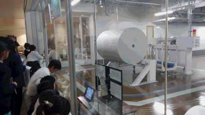 19日(金)に朝日新聞大阪工場へ行きました。新聞ができるまでの工程や、梱包の様子などを見学しました。凸版印刷という昔の新聞の作り方を実際に見せてもらったり、今のカラー印刷の仕組みを説明してもらったりしました。機械化により、とても効率よく新聞が作られるようになったことがわかりました。また、3トンもある大きなロール紙の保管倉庫や、それを運ぶ機械なども見ました。気になることがあると工場の方に積極的に質問をし、熱心にメモをとっていました。また、1時間に16万部というスピードで印刷されていく新聞の様子には目を奪われていました。