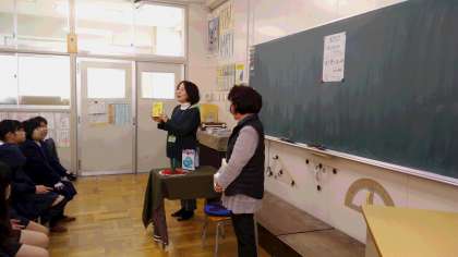 「クルミわりのケイト」などのお話を聞かせていただきました。子どもたちは頭の中で情景を思い浮かべながら、熱心に話を聞いて いました。途中で頭の体操にもなるという指遊びも教えていただきました。こうした機会を通して、好きな本に出会えるといいなと思います。