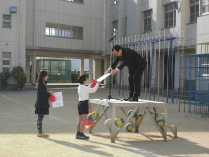 3月13日(火)、全校朝会で、全大阪幼少年美術展の入選者について、特選2名の表彰および佳作11名、努力賞22名の紹介を行いました。。