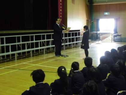 初めに、校長先生から5年生代表児童に修了証が渡され、子どもたちのこの一年間の成長などのお話がありました。次に生活指導の先生から、春休みの過ごし方と来年度は始業式から帽子かぶって登校することについてのお話がありました。最後に全員で校歌を歌いました。