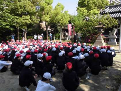 田蓑神社では、校長先生から避難訓練の重要性やいのちの大切さなどについてお話がありました。