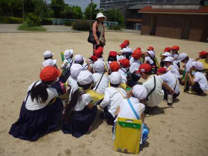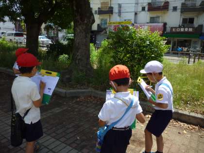 6/1(金)の2・3時間目に、1年生35名は公園探検へ行きました。新佃公園に行った後、佃ふれあい公園に行きました。お天気が良かったので、モンシロチョウやアゲハチョウ、だんご虫など公園の虫たちも1年生を出迎えてくれました。しろつねぐさやあじさい、ヒメジオンなどを見つけました。