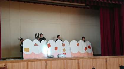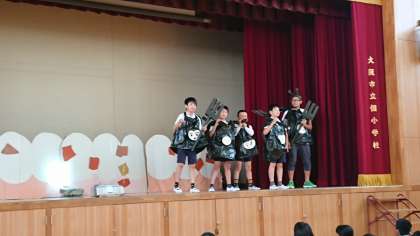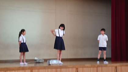 6月5日(火)、朝の児童集会の時間に、健康委員会の児童が「はみがき戦隊ピカレンジャーとミュータンスキン」の劇をしました。来週11日から1週間、「歯 ピッカリン週間」を行うにあたり、劇を通して次の3つの約束を守り、歯を大切にしてほしいことを伝えました。1.食べたらすぐに歯をみがくこと 2.砂糖の入ったおやつや飲み物をたくさん飲んだり食べ過ぎないこと 3.カルシウムの入った牛乳や小魚、海藻、野菜等をしっかり食べること 「歯 ピッカリン週間」の間は、朝晩のはみがきと給食後のブクブクうがいのチェックを行います。ご家庭でも食後のはみがきの声かけをよろしくお願いします。