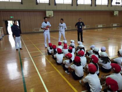 6月15日(金)オリックス野球クラブの方々による出前授業を行いました。あいにくの雨で講堂での活動となりましたが、子どもたちは元気いっぱい打って、走って、守って、ルールをしっかり守りながらティーボールをしました。得点が入るたびに盛り上がり、みんな楽しくプレーしていました。野球選手と触れ合うことで子どもたちにとっていい思い出になったと思います。