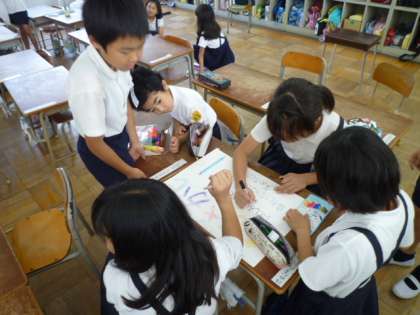 ルール説明の練習やポスター作りなど班で協力して行うことができました。