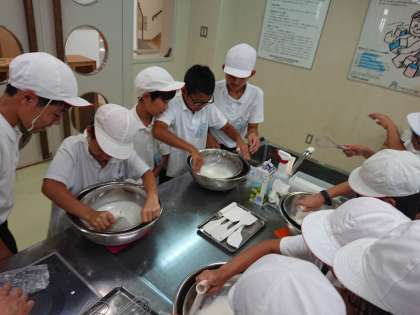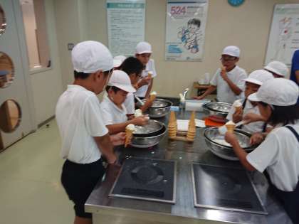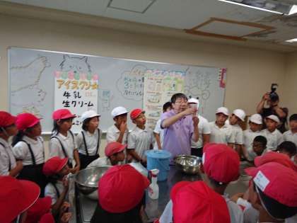 えさやりの後、涼しい部屋でアイスクリームづくりをしました。一生懸命つくったアイスクリームはおいしくて、体の芯まで冷えました。